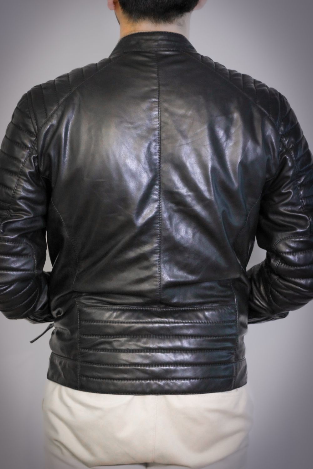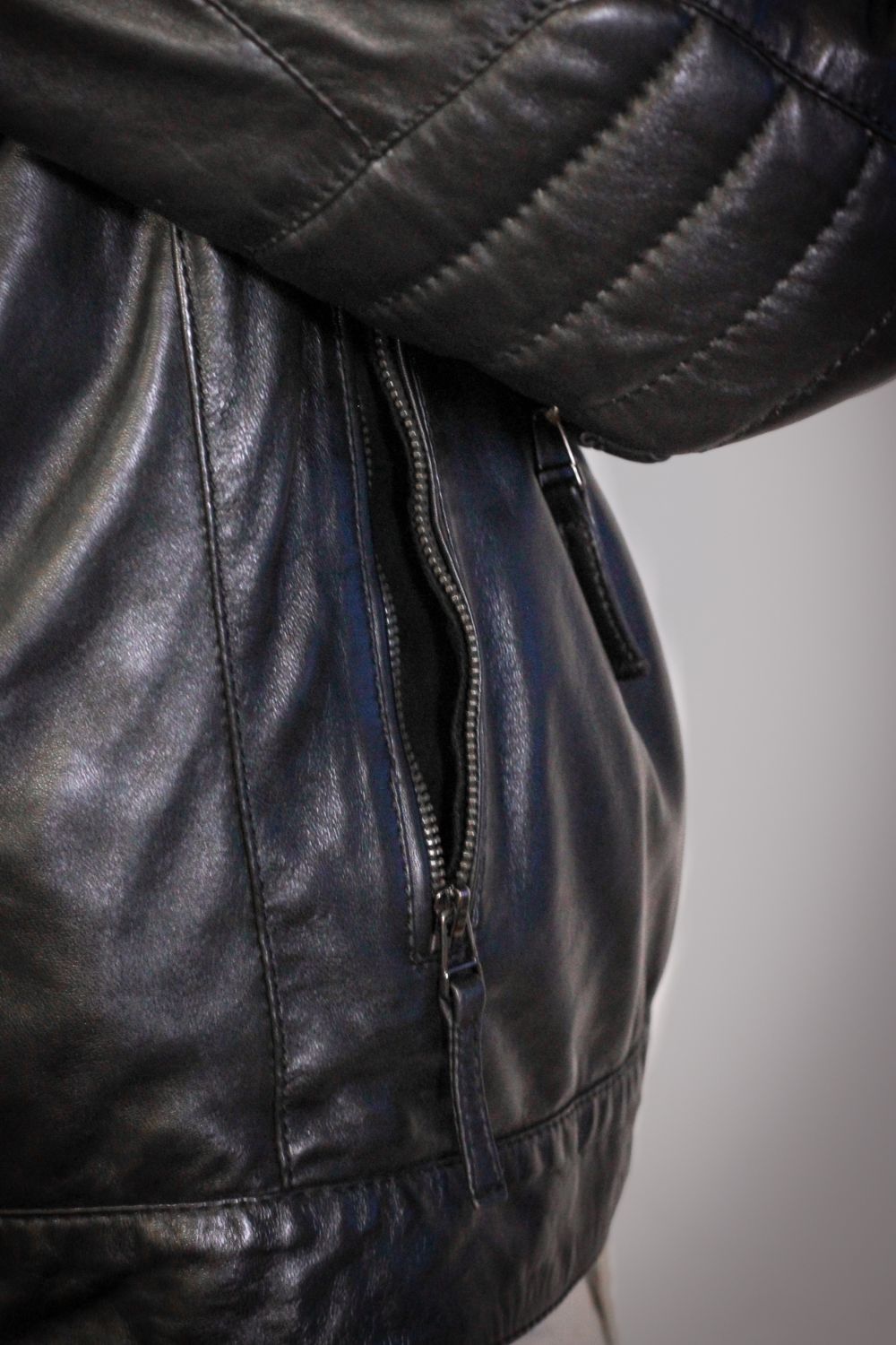 Versatilidade, presença e detalhe — o Blusão em pele Barcelona foi desenvolvido para quem gosta de peças que falam antes de qualquer palavra. Confeccionado em couro verdadeiro, macio e resistente, este modelo destaca-se pelo trabalho acolchoado nos ombros, mangas e zona lombar, criando um visual robusto e poderoso sem perder elegância. O desenho foi pensado para estruturar a silhueta, ampliando visualmente a linha dos ombros e valorizando o porte de quem o usa.