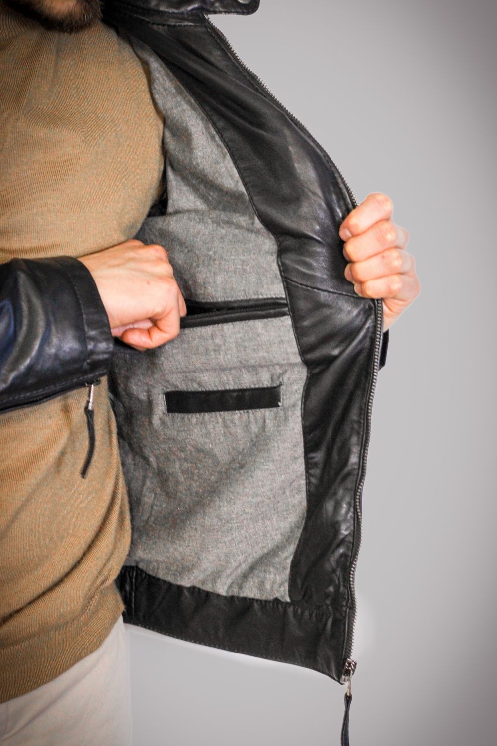 Uma escolha certeira para quem procura um blusão de couro preto que comunique força, estilo e atitude. Barcelona é moderno, urbano e seguro de si — tal como o homem que o veste.