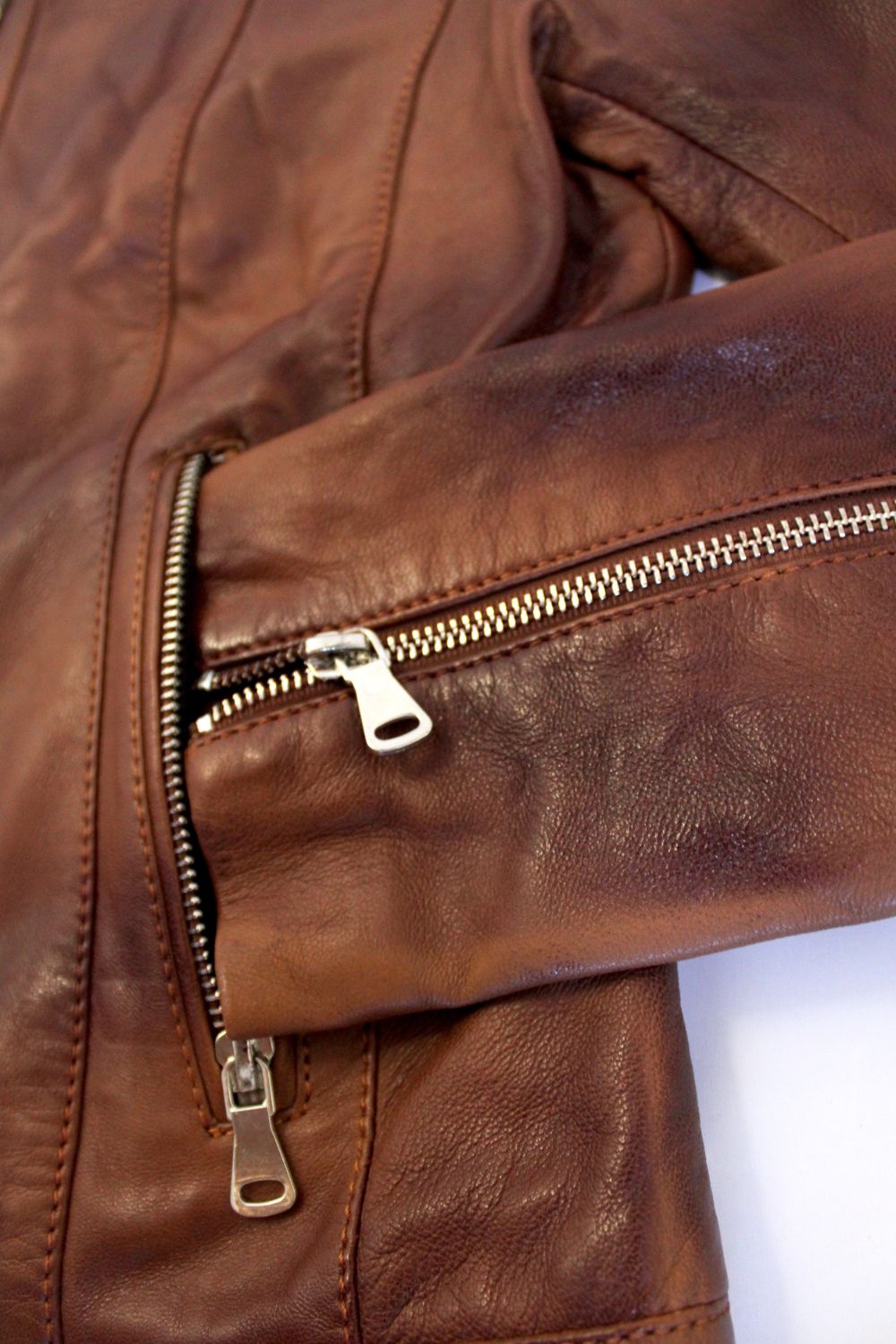 Blusão feminino em pele genuína de carneiro, castanho com acabamento artesanal. Estilo moderno, corte ajustado e perfeito para todas as estações. Ideal para usar em Portugal e Europa.