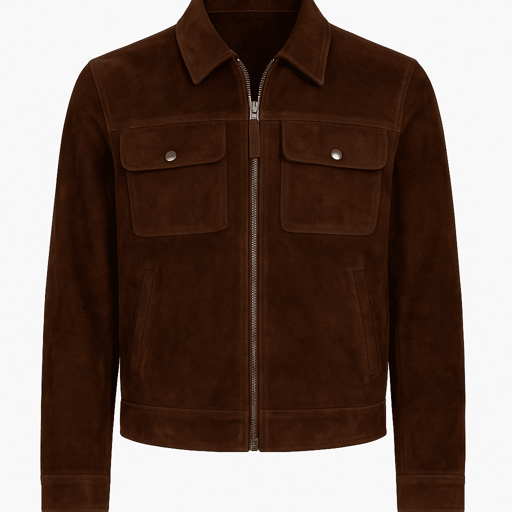 Casaco clássico em pele de camurça de cabra genuína, com corte reto, toque suave e bolso interior funcional. Perfeito para todas as estações e ideal para um visual elegante e moderno.