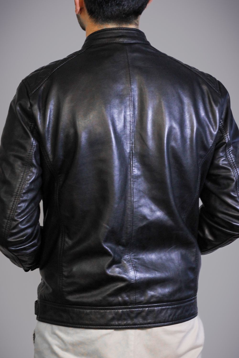O Blusão em pele Viena apresenta-se como uma peça de personalidade firme, desenhada para quem aprecia estilo com substância. Mantém a estrutura elegante que define esta linha — dois bolsos superiores com fecho, costura reforçada e ombros trabalhados — mas assume um visual ainda mais sólido e versátil graças ao acabamento profundo do couro.