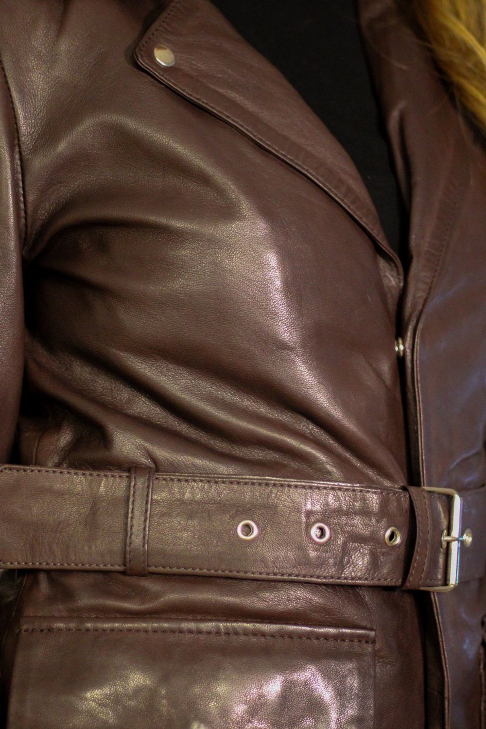 O Casaco longo em pele Bariloche foi desenhado para mulheres que procuram presença, conforto e estilo num só gesto. O seu comprimento três-quartos alonga a silhueta de forma subtil e elegante, enquanto o acabamento em pele genuína oferece textura rica, toque macio e durabilidade para acompanhar muitas estações.