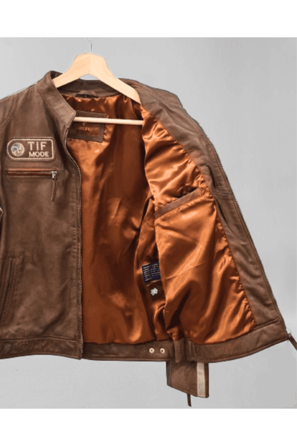 Blusão em pele castanho Antiq Motorbiker
