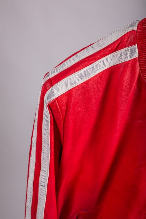 Eleve o seu estilo com o nosso blusão vermelho Roma, para homem, com linhas de ombros brancas. Uma peça arrojada e dinâmica que exala sofisticação moderna e frescura sem esforço.